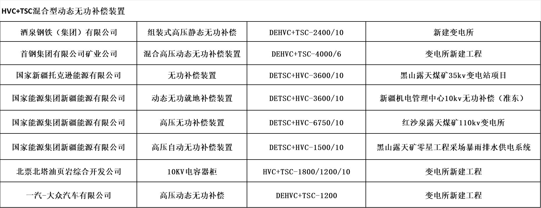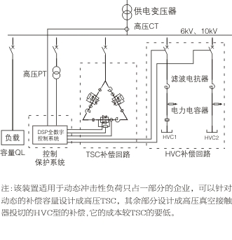 高壓HVC+TSC動(dòng)態(tài)無功功率補(bǔ)償裝置廣泛應(yīng)用于高壓交直流輸變電系統(tǒng)和冶金、煤炭、港口門機(jī)、電氣化鐵路、重型機(jī)械制造等工業(yè)、交通沖擊性負(fù)荷配電網(wǎng)中。其主要作用就是對(duì)沖擊性負(fù)荷、時(shí)變負(fù)荷能夠?qū)崟r(shí)監(jiān)測、動(dòng)態(tài)補(bǔ)償,實(shí)現(xiàn)功率因數(shù)補(bǔ)償至0.9以上,穩(wěn)定系統(tǒng)電壓,減少供電系統(tǒng)的網(wǎng)絡(luò)損耗,提高電能質(zhì)量等顯著特點(diǎn),可以給用戶帶來巨大的經(jīng)濟(jì)效益和社會(huì)效益。