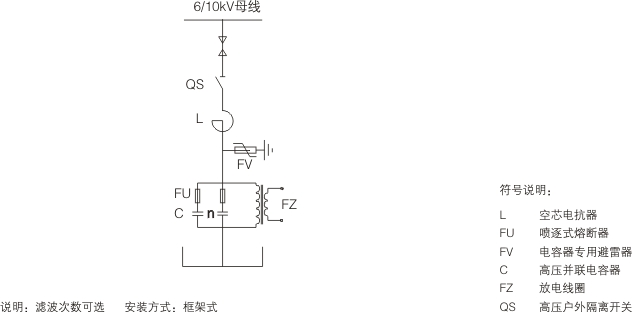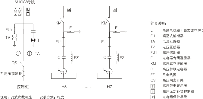 高壓FC每個(gè)支路由真空開關(guān)、濾波電容器、濾波電抗器、放電線圈、電流互感器、避雷器等組成。